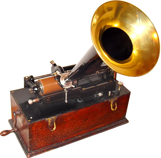 Thomas Alva Edison, selvlært amerikansk oppfinner, bekjentgjør The Phonograph første gang 21. november. Første demonstrasjon var 29. november ifølge ham selv, men notater fra assistenten Charles Batchelor tyder på at den ikke var ferdig før 4. desember 1877, to dager før første offentlige demonstrasjon 6.12.1877. Fonografen ble levert inn til patentstyret 24.12.1877 og fikk registrert US. Patent 200 521 av 19.02.1878. Edison blir dermed den første til å lage et inn- og avspillerapparat som virker. Lydbæreren er en tinnfoliesylinder med lydsvingninger (riller) som blir spilt av tangentialt av en stift festet til en membran. Svingningene forsterkes i et horn. De første ordene Edison spilte inn var ”Mary Had a Little Lamb”. |